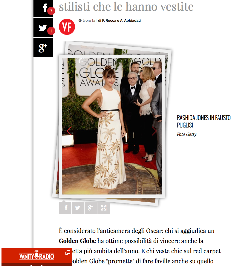 Rashida Jones in Fausto Puglisi on Golden Globe Awards