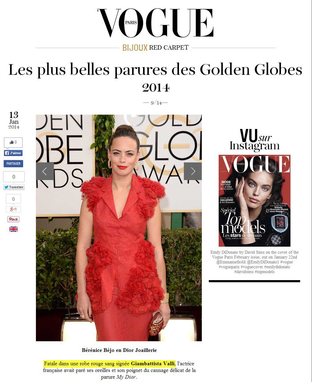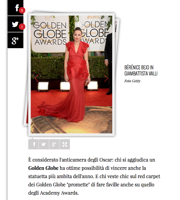 Berenice Bejo in Giambattista Valli on Golden Globe Awards