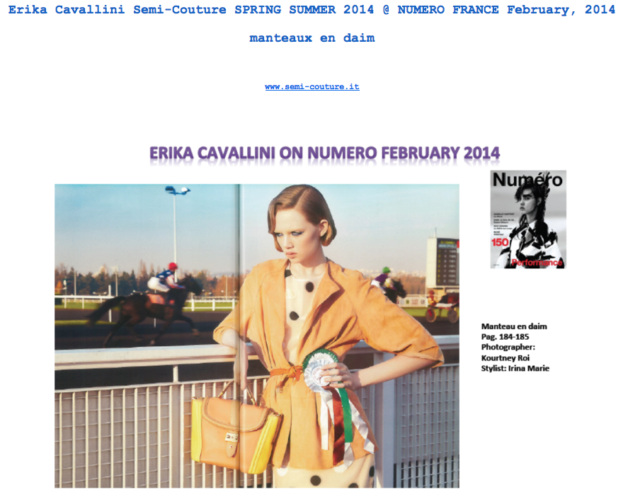 ERIKA CAVALLINI Semi-Couture SS 2014 on NUMERO FRANCE DOUBLE PAGE February 2014