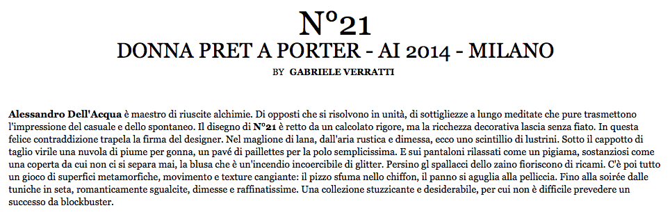 N°21 on Fashionmagazine.it